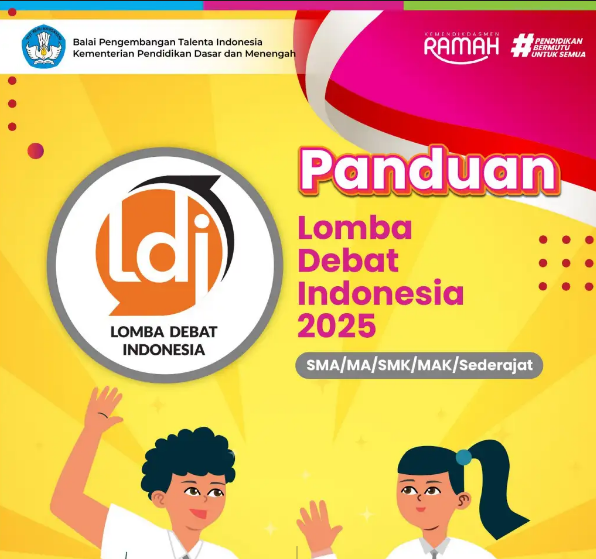Gurubagi.com. Panduan Lomba Debat Indonesia (LDI) Tahun 2025 telah diterbitkan oleh Balai Pengembangan Talenta Indonesia, Kemendikdasmen.