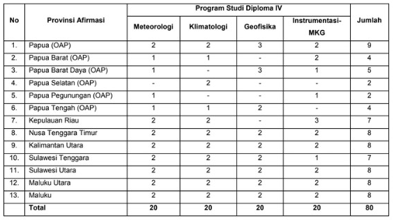 Di dalam Pengumuman BMKG tentang Penerimaan Taruna Baru Sekolah Tinggi Meteorologi Klimatologi dan Geofisika STMKG Tahun Akademik 2023/2024 disampaikan bahwa berdasarkan Surat Menteri Pendayagunaan Aparatur Negara dan Reformasi Birokrasi Nomor: B/627/M.SM.01.00/2023 tanggal 24 Maret 2023, perihal Persetujuan Prinsip Kebutuhan Taruna/i Sekolah Kedinasan dari Sekolah Tinggi Meteorologi Klimatologi dan Geofisika (STMKG) Tahun Anggaran 2023 untuk Mengisi Kebutuhan CPNS di Lingkungan Badan Meteorologi, Klimatologi, dan Geofisika (BMKG), STMKG mengundang para putra/putri Warga Negara Indonesia untuk mengikuti seleksi penerimaan menjadi Taruna/i STMKG Tahun Akademik 2023/2024, dengan ketentuan sebagai berikut.